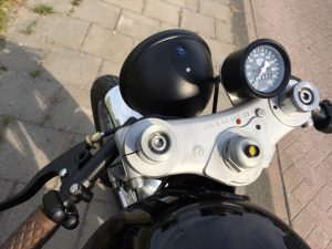 Custom kroonplaat, nieuwe koplamp en mooi zadel. Uitlaat is hand gemaakt en mooi met uitlaat wrap omwikkeld.